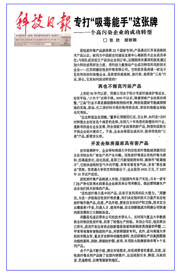 科技日?qǐng)?bào)——專打“吸毒能手”這張牌——一個(gè)高污染企業(yè)的成功轉(zhuǎn)型